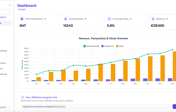 Unified affiliate tracking with multi-level marketing, commission tiers, real-time analytics, automated payouts, direct linking, fraud protection, and global compliance.